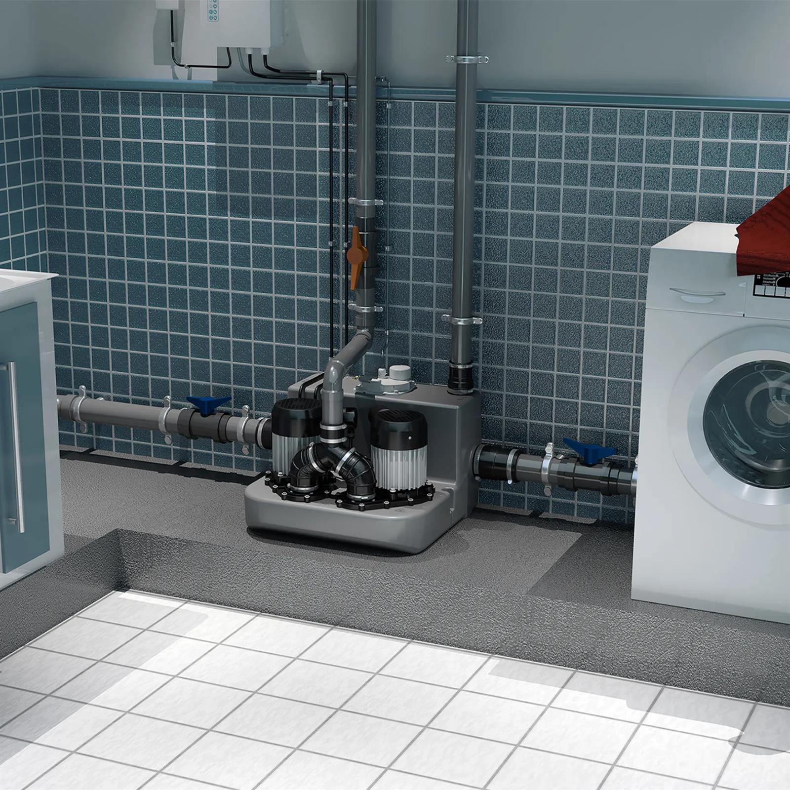● Multiple Connections: This lifting station can take wastewater from multiple connections, such as a sink, washing machine, dishwasher, washbasin, bath, bidet, and shower.