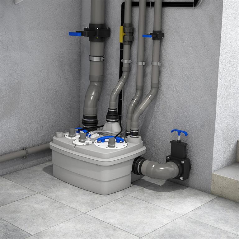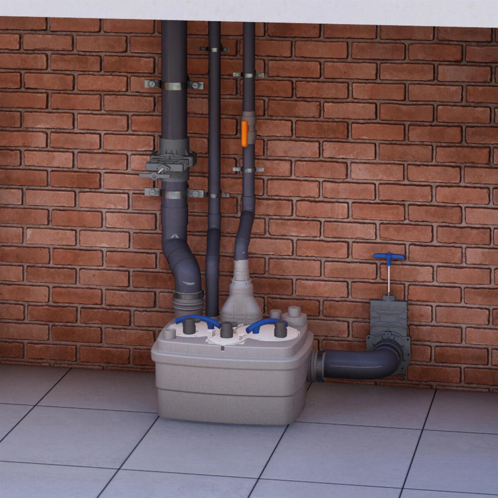 The Sanicubic 2 Pro is a high performance macerator pump for commercial use. It contains two separate, load balanced pumps with high performance macerating systems and will operate alternatively. In the event of inflow overload, both motors run at the same time or in the unlikely event that one motor fails, the other one will take over.