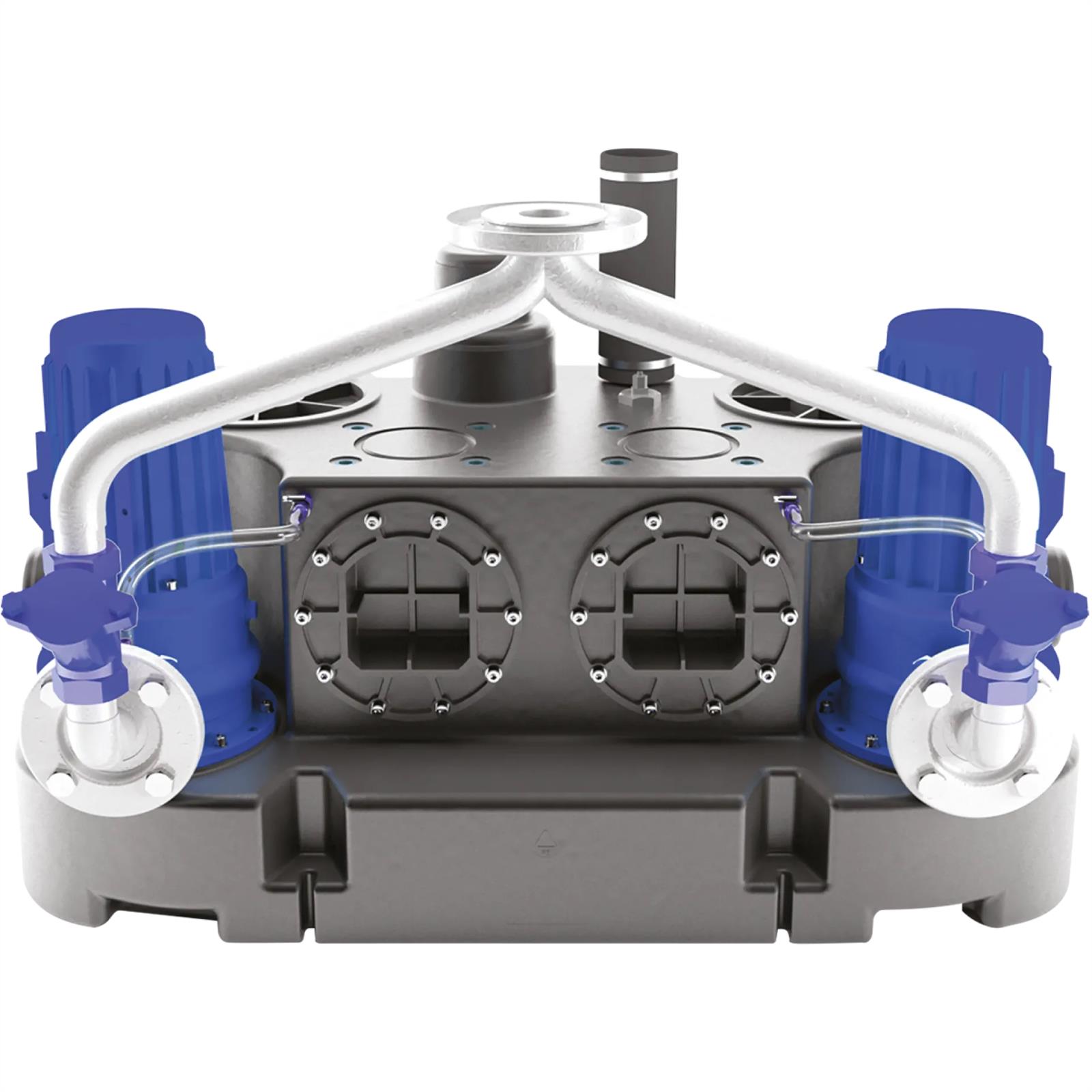 The SANICUBIC 2 GR is a lifting station with two IP68 certified motors and two pumps with cutting blade systems.The SANICUBIC 2 GR is available in 4 versions for 4 high level lifting performances. It has 5 inlets, so it is possible to collect all waste water even in the most difficult situations.The station is supplied with a remote control box and audible and visual alarms.